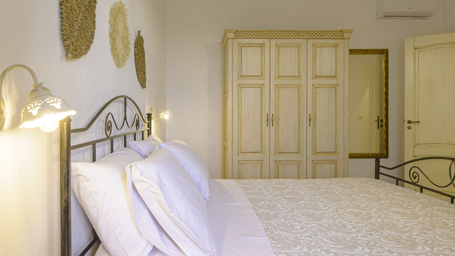 Raffinato bilocale composto da un soggiorno con angolo cottura e divano letto, una camera da letto matrimoniale e un bagno privato.
